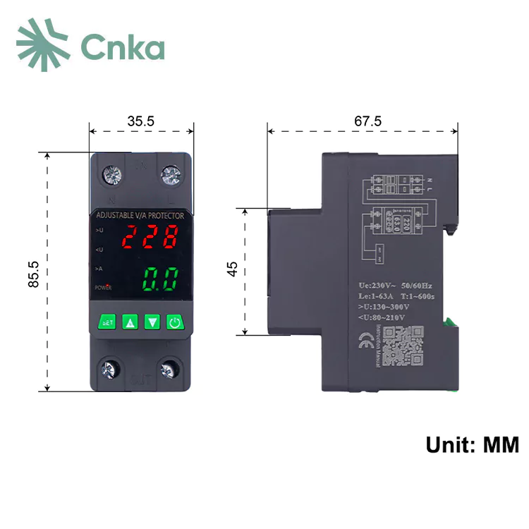 CNKA ఒక ప్రసిద్ధ చైనీస్ సరఫరాదారు, ఇది దాని బ్రాండ్ యొక్క 2 పోల్ వోల్టేజ్ ప్రొటెక్టర్ రిలే యొక్క టోకును అందిస్తుంది. ఈ పరికరాలు ప్రత్యేకంగా సింగిల్-ఫేజ్ ఎసి 220 వి, 50 హెర్ట్జ్ సర్క్యూట్ల కోసం 63 ఎ రేటెడ్ కరెంట్తో రూపొందించబడ్డాయి, ఇవి సింగిల్-ఫేజ్ పరికరాలకు శక్తిని సరఫరా చేసే నివాస పంపిణీ పెట్టెలు లేదా వైర్లను రక్షించడానికి అనువైన ఎంపికగా మారాయి.